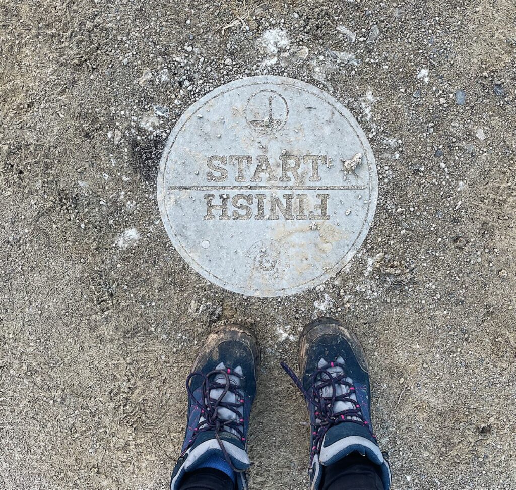 To start on this walk you have to cross over the road - again, here’s another warning to be careful as people fly round the bend after the slog of crawling up Sutton Bank itself. The start of the walk is easy to find and as you can see from the photo below, the start/finish is clearly marked on the floor.