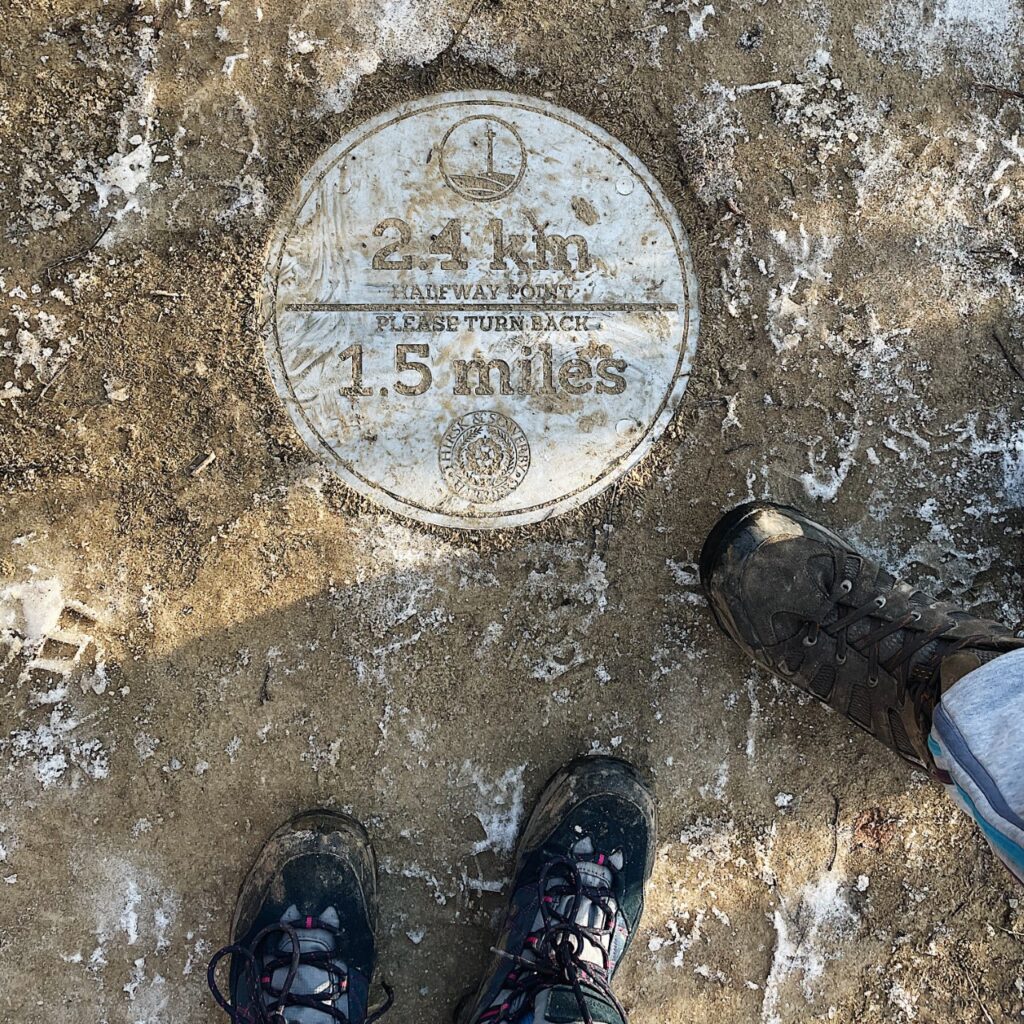 The beautiful views start from here and let me tell you, on a clear day you can see for miles. As you enter the clearing where the walk starts, there is actually a plinth bearing a plaque that shows you exactly what you are looking at. When we visited it was so cold it had frosted over so we couldn’t actually make anything out but it made for a nice Bruce photo (see featured image).